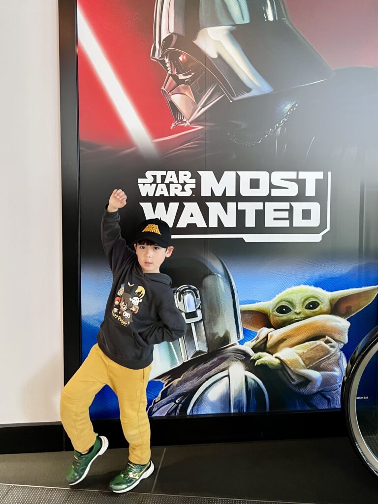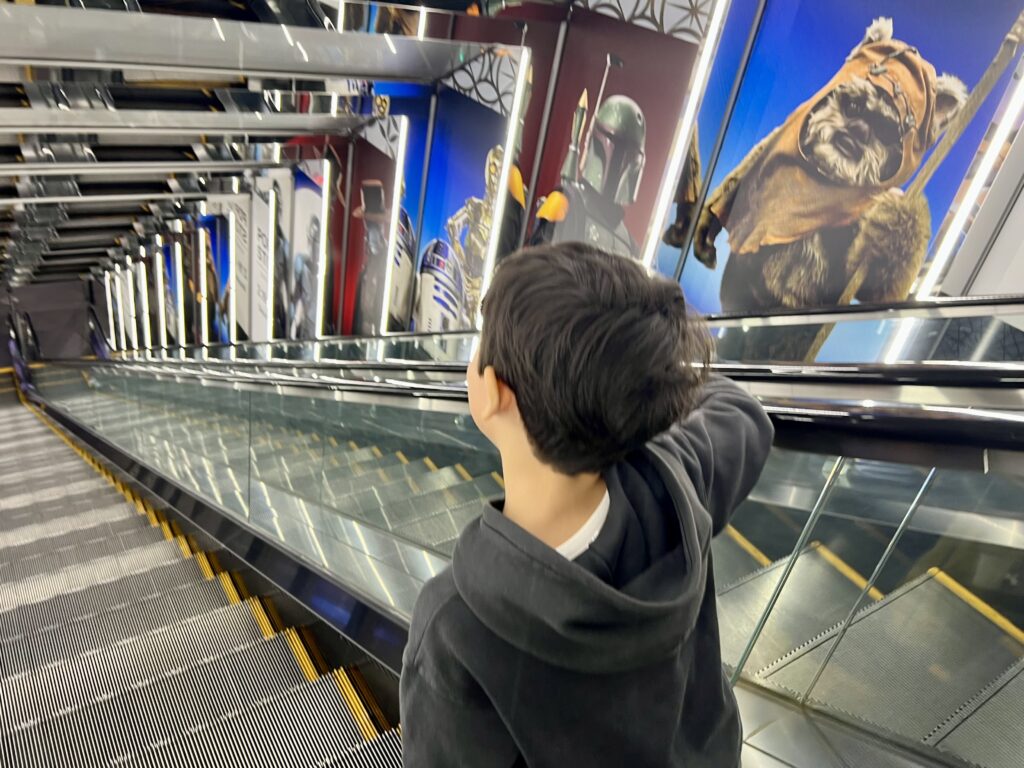 Coming up the escalator I could not tell which one of us was most excited. There is a new Star Wars movie coming in May, and I guess they try to make business out of it, hence a pop-up store that heavily featured goods and visuals from this upcoming movie. Our son got very fascinated with a life sized Darth Vader doll, and we all got matching Star Wars caps to use this spring as well as some other small items to use in our increasingly Star Wars focused life.